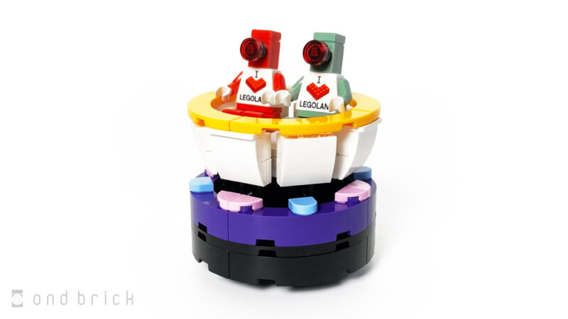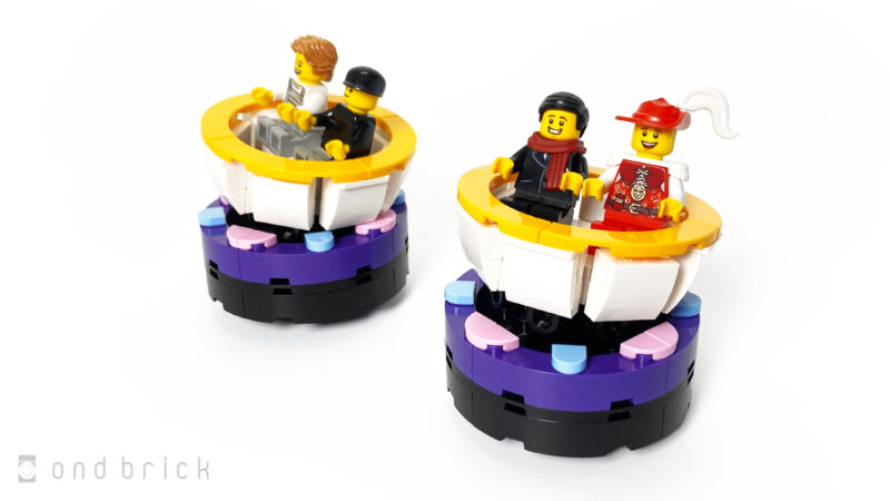 実際のアトラクションは十人乗りですが、それをそのままレゴで再現しようとするとなかなかの大きさになるので、今回は二人乗りにアレンジしています。