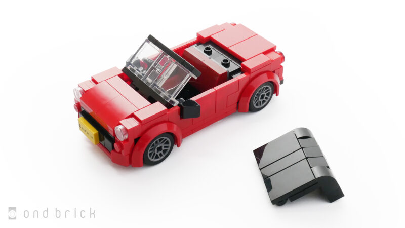 せっかくレゴと相性抜群な6幅車サイズを選択したくせに、わざわざフロントガラスを5幅に設定したおかげで苦労した点も多々ありましたが、その苦労の甲斐もあり、なかなかいい感じのコペン感は出せた気はしています。