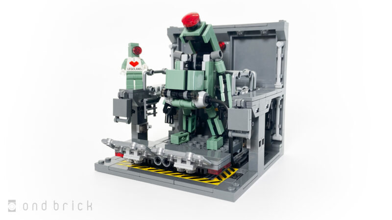 以前ご紹介した小型のレゴロボ「オンボー」にぴったりサイズの格納庫です。