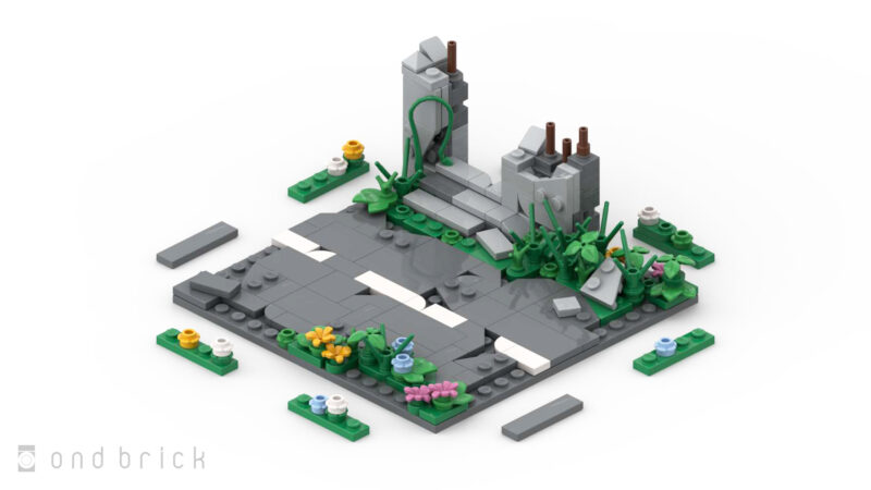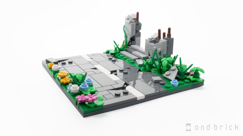 今回も植物の配置や建造物の壊れ具合のバランスなどに超絶苦労したんですが、その苦労の甲斐もあって、なかなかいい感じの廃墟感を表現できたような気はしています。