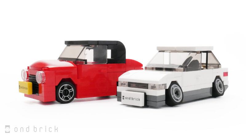 レゴ作品全体に言えること(特に4幅車では顕著)ですが、たかだか0.5プレート厚分のこだわりでクオリティが段違いに変わるのが、レゴのおもしろいところですよね。